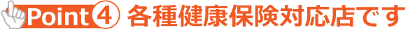 各種健康保険はもちろんのこと、その他スポーツ振興保険・自賠責保険・労災などもご利用いただけます。